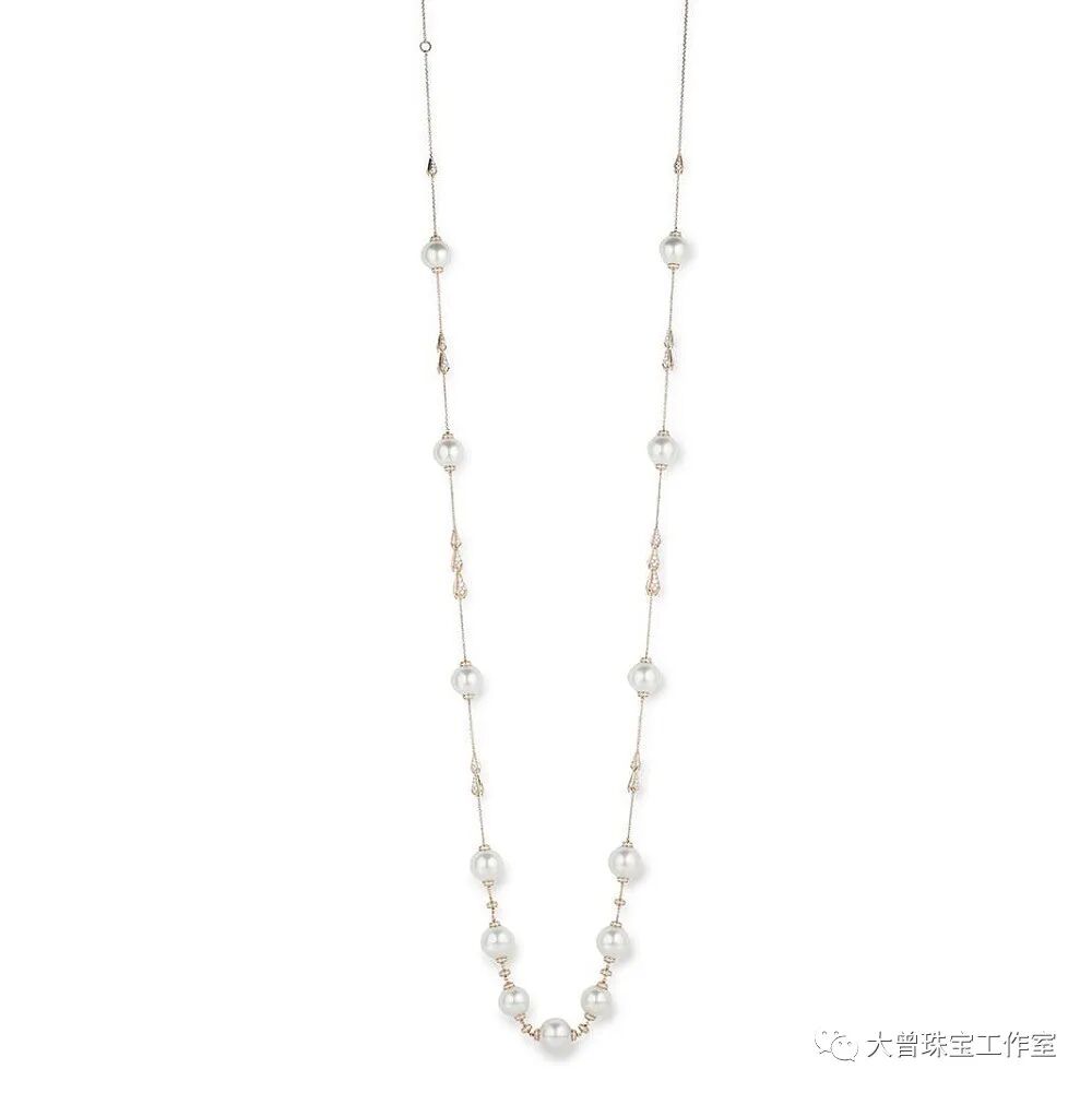 由珍珠、玫瑰金圆珠和粉色碧玺、绿色碧玺、
