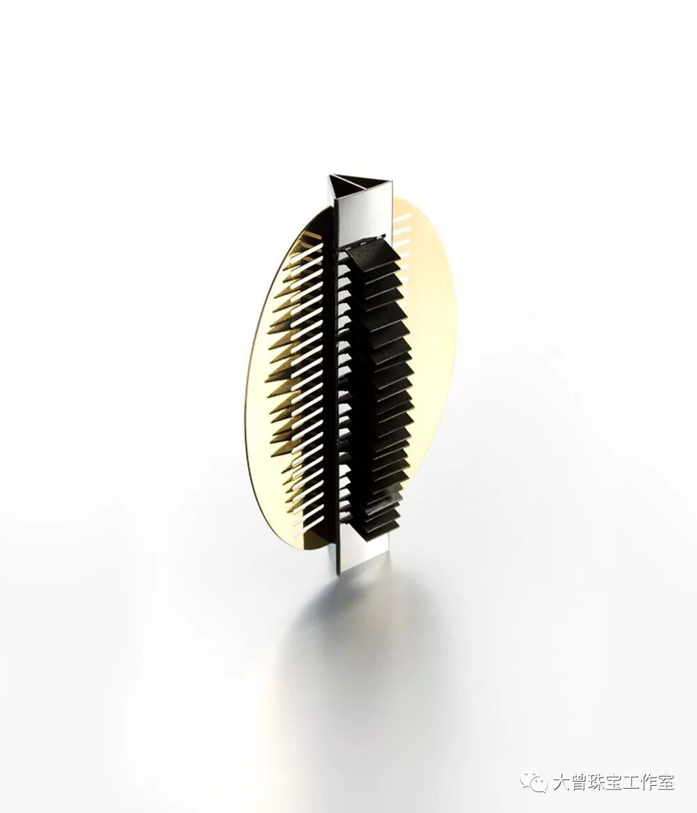 Ji Young Kim的首饰以金属制品为主,以几何形式为基础。几何形式是由数学关系构成的图形,代表着严格秩序的世界。它不是自然的反映,而是人类思想创造的一种纯粹的抽象形式。Kim以这种几何形式的静态空间为主体,通过各种细节的融合和重复,增加了复杂的图像。尽管它是一个简单的组成,每个元素通过各种组合相互渗透,反映,或重复,以干扰身体的静态形象存在。