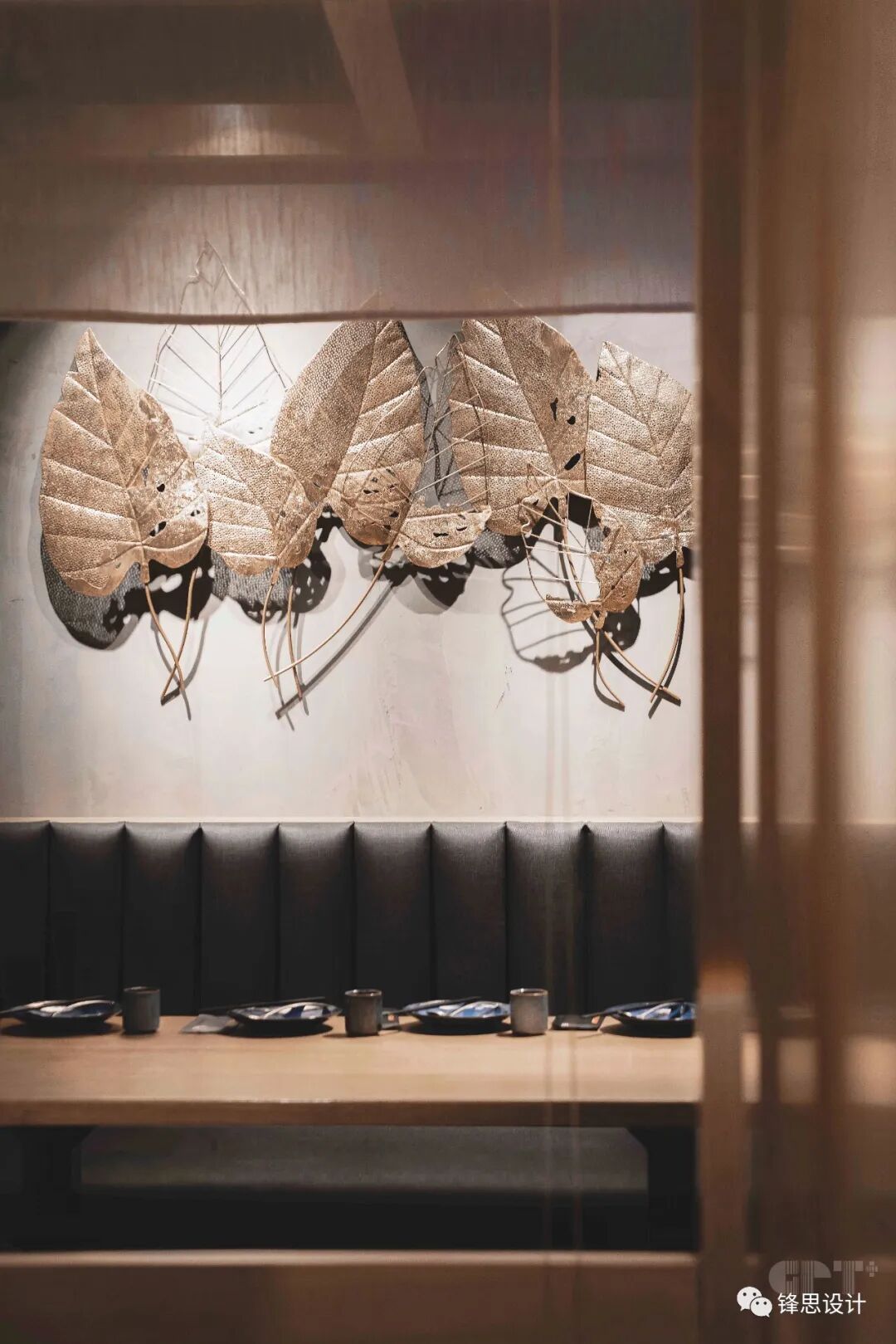 一片片大小匀称、形态艺术化的木板,铺陈出有韵律的空间格调。镂空的木隔断,营造出朦胧的视觉感,人们似乎可以一眼望穿这个空间,却又看不尽这里所有的秘密。