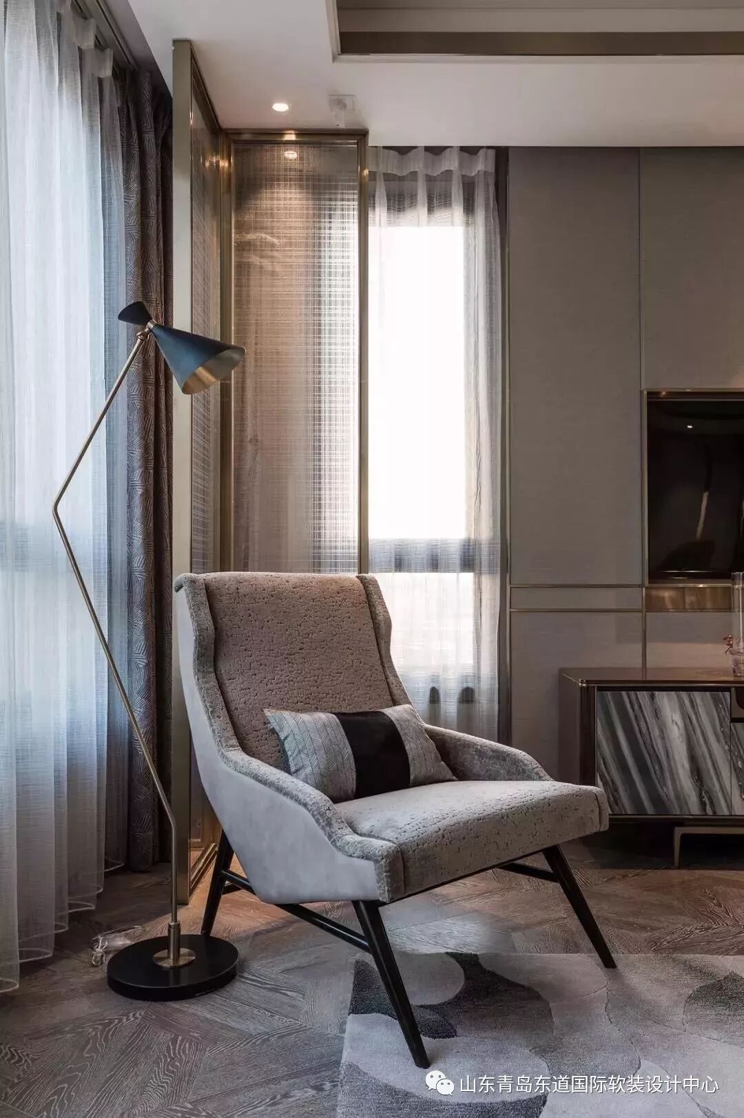 不过,黄铜作为一种独特的装饰元素,多以少量点缀的形式出现。各种造型别致的画框、柜门把手、细脚椅等,让空间充满奢华格调,更具优雅大气的视觉体验。