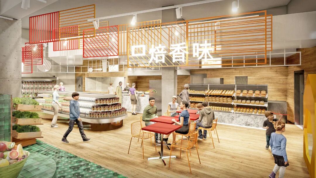 食物处在空间之中,不只是机械地作为物品摆放和陈列。当食物与人有了互动,它就承载着不同的功能需求,与空间发生了多种联系。人与食物、空间之间互动的多样性,形成了不同的场域。空间设计需要抵达这些场域的中心,对它们之间的关系进行梳理,去营造一种巧妙的氛围,将它们融为一体。在虚拟场域挤压现实互动空间的今天,人们更加需要这种突破形式、向内而生的空间体验。食物与空间氛围的设计营造,是一项面向未来的事业。在都市中,市场为人与食物提供最初的相遇。随着当代人生活方式的改变,人们对都市市场有了不一样的期待。盒马mini新概念店是一家社区零售店,主要面向居民区中的家庭,项目的挑战在于如何将中国人的日常购物习惯融入至大规模零售业。