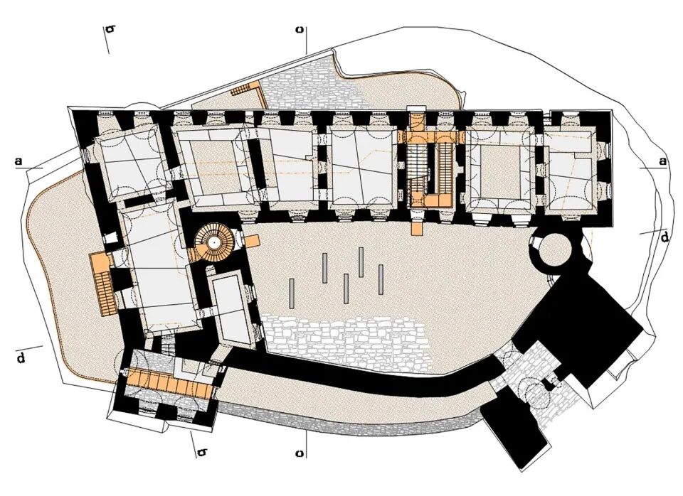 城堡所有者对该项目的基本要求是:修复奥洛穆茨地区(Olomouc Region)的宫殿,并为其重建新的屋顶。根据国家文物研究所的要求,本项目将在保护城堡遗址现状的前提下进行修复。因此,建筑师只能改造部分屋顶,屋顶高度不能超过外墙。