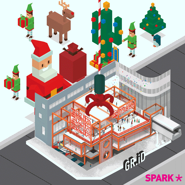 每个人都知道圣诞老人在北极有一个工作室。今年,圣诞老人用他的新3D打印机打印出SPARK思邦在建项目的微型模型。你可以在动图中看到它们被放在传送带上,期待建成。