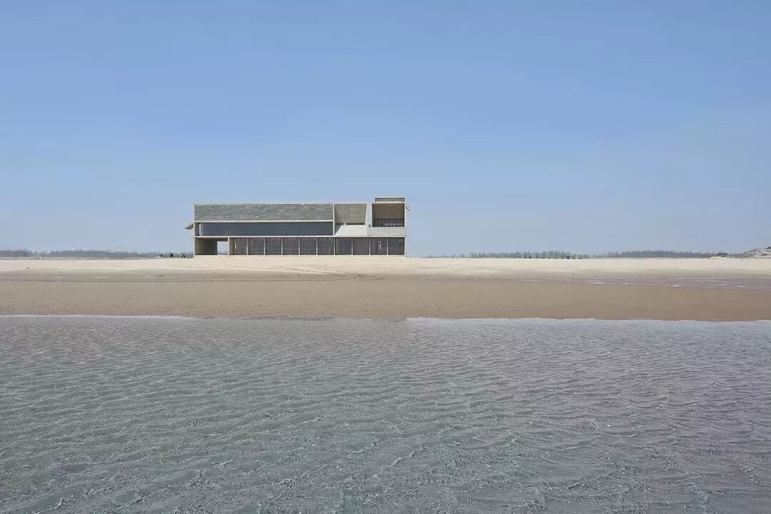 这座全名叫「三联书店海边公益图书馆」的建筑,位于秦皇岛南戴河海岸边。这里有着一望无际的、安静的海,海浪踩着节奏踱向沙滩,面朝大海的图书馆,孤零零得伫立在空旷的沙滩上,恍若世界的尽头。