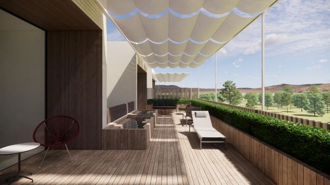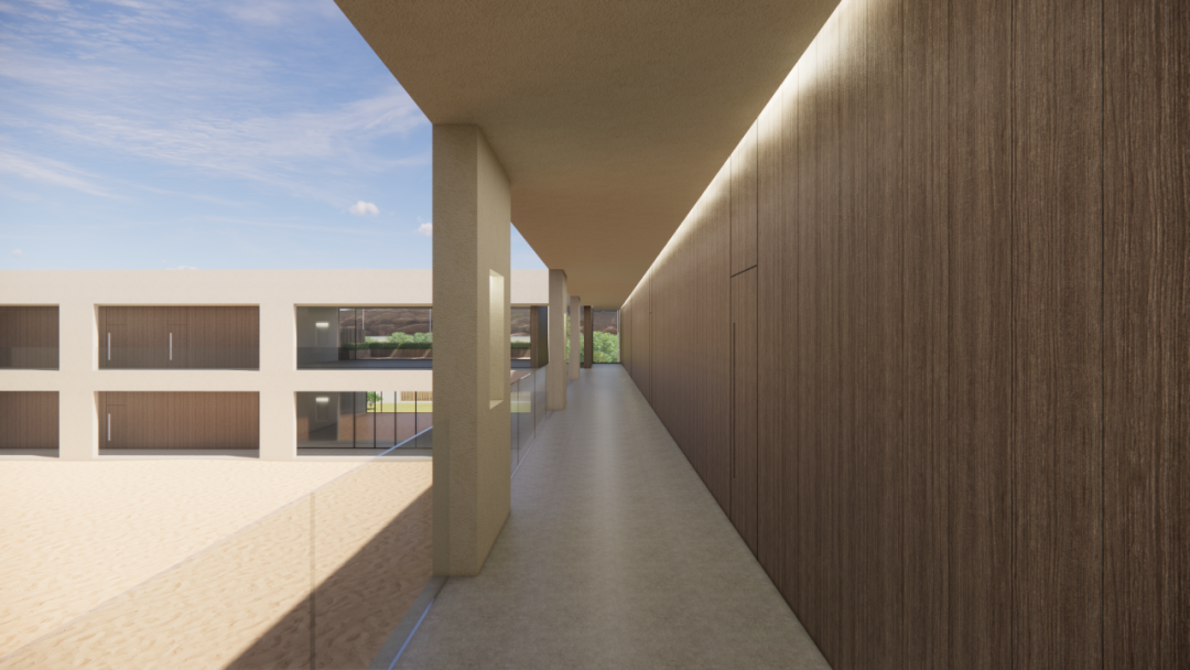 建筑在室外景观植被的配合下保持有机的态度,当地特有的沙地柏及各类沙生植物和灌溉系统将沿着建筑轮廓线逐渐向外蔓延,自然生长。室内景观中的不同沙生植物将通过大大小小的中庭区形成多个室内微气候,利于调节温湿度,隔热,通风,收集雨水,延续自然本身的可持续性。我们在沙漠做设计有很多反对的声音,因为第一个沙漠项目在实践过程中会面临很多技术性问题、视觉审美性问题等,由此我提出了“草原美学”这个理念应用在草原项目中,希望我们所做的在大自然中的项目能够与自然共生。在自然中做建筑,让自然也能感受到建筑,如何让过去的我,现在的我,将来的我都能够与自然共生在一起,这些都是我的思考点。