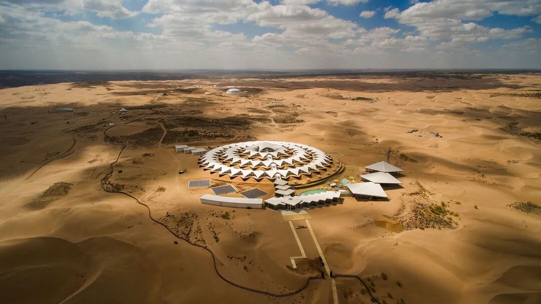 在这个项目进行的同时,大量类似的沙漠项目主动和我们沟通,2017年亿利集团王文彪董事长提出在库布其西端做一个大型酒店——七叶菩提沙漠酒店,延续了莲花酒店的共生理念,因为大自然不是我们的敌人。侯仁之先生说过沙子是一种跟石头、黄土一样固定的存在,让沙子消失是完全不可能的,只能把它固定在某一位置不移动。在我们的想象中沙漠是荒芜的,不适合人生存的,但实际上沙漠里的生命力非常强大。