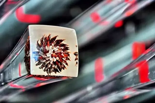 每个亚克力杆的根内藏着形态各异的种子,包括农作物类的如水稻、小麦、玉米等,药类如莲子、八角、银杏等,还有油料、咖啡、茶等。