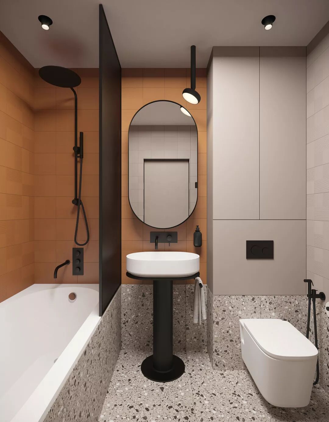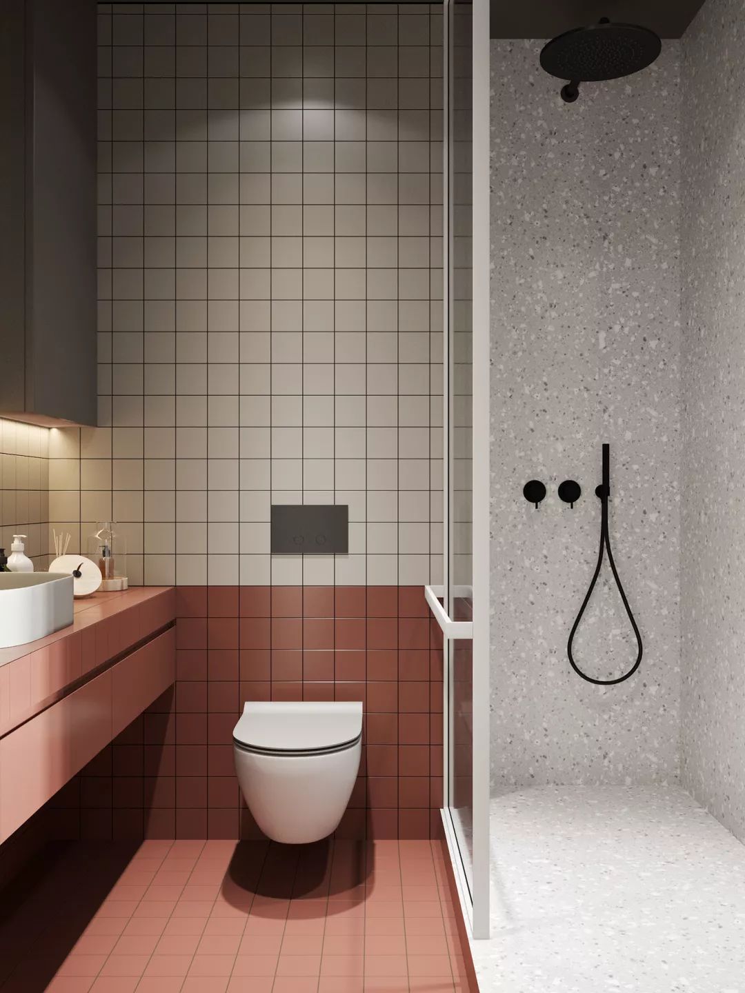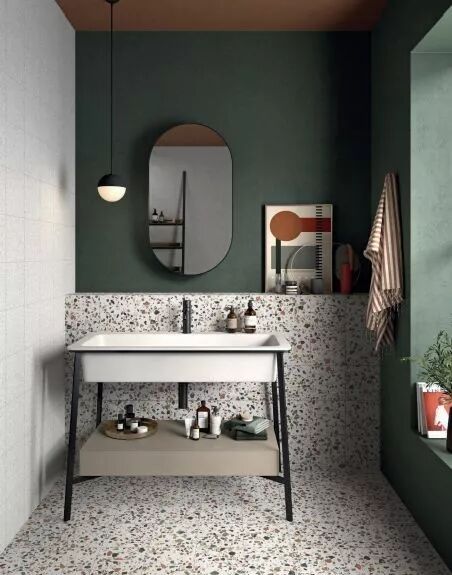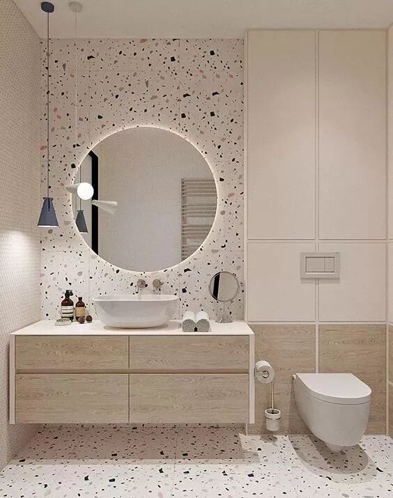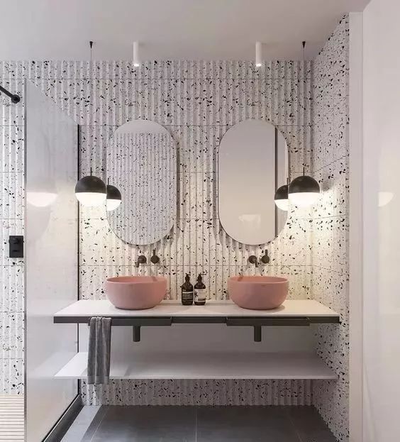 这几年,水磨石杀回了设计圈,而且从前老土过失的古董不复存在了,逆袭成为时尚的代名词,用于卫生间再好不过,完美搭配各种材质与纹理。