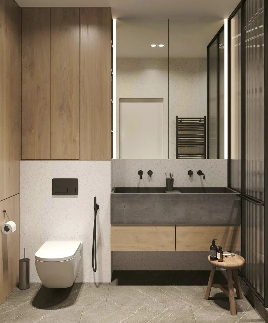 当木质元素取代了亚克力或者陶瓷的冰冷,彷佛给人一个更温馨亲和的港湾,卫生间不再只是短暂停留之地,更是心灵休憩之所。