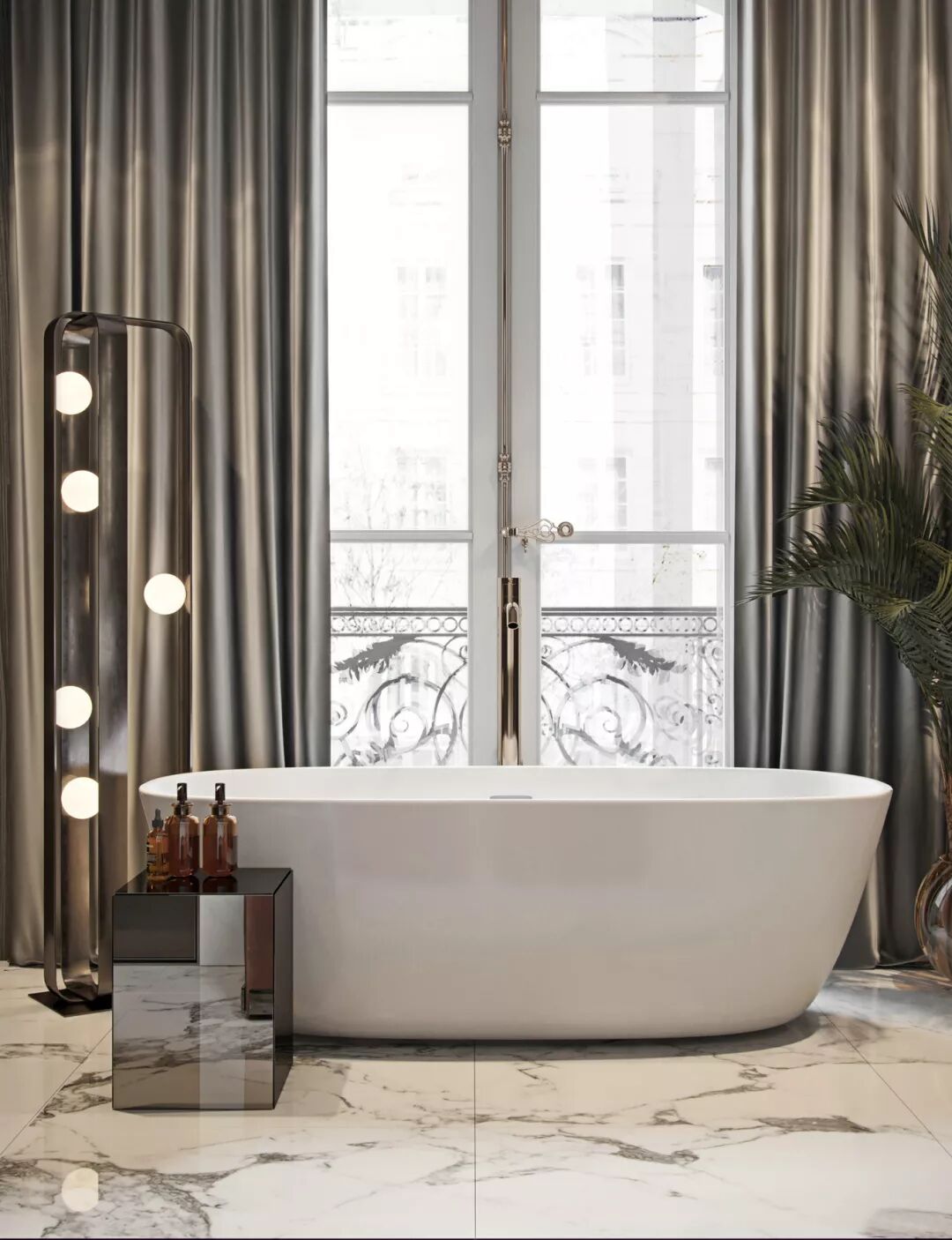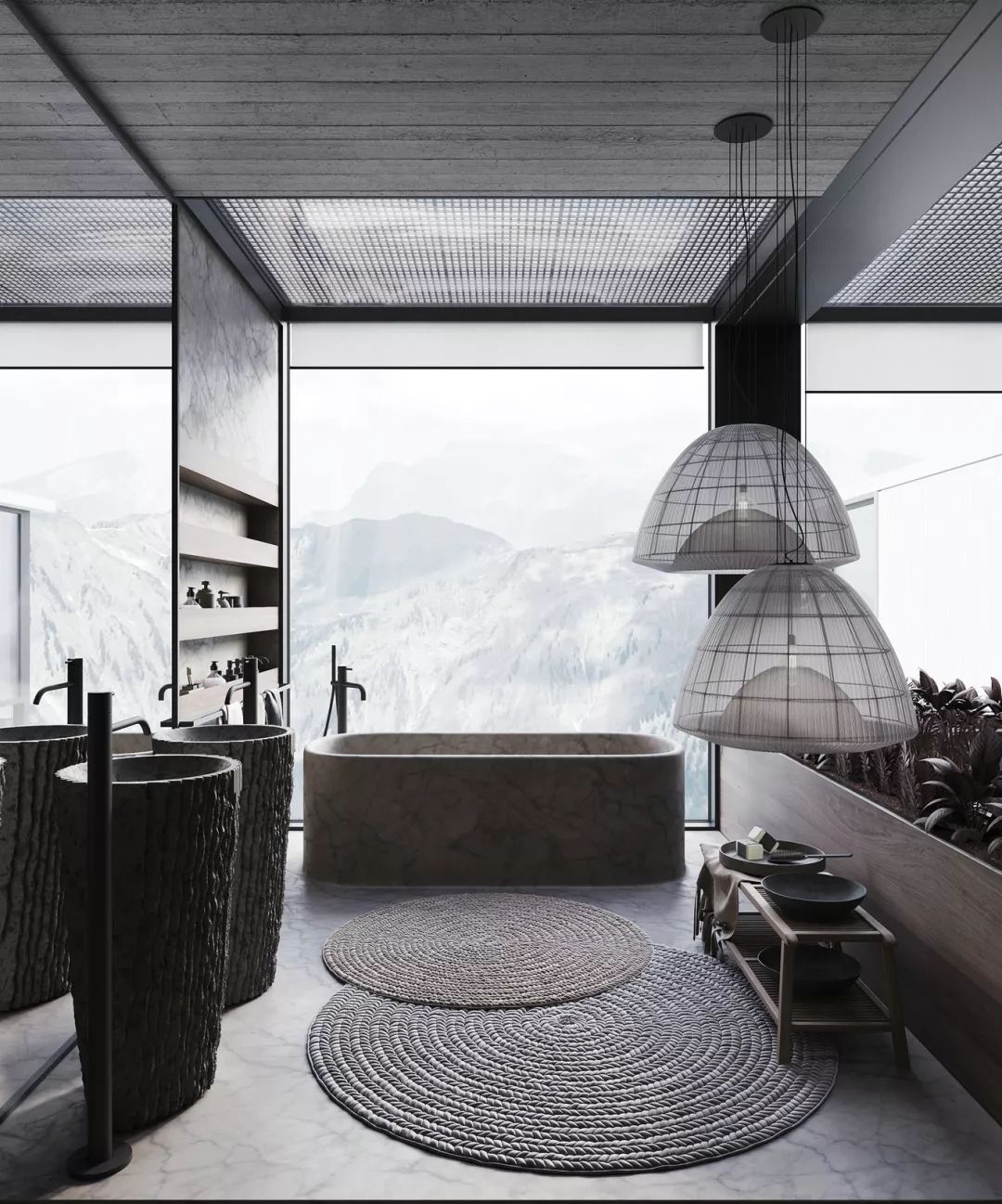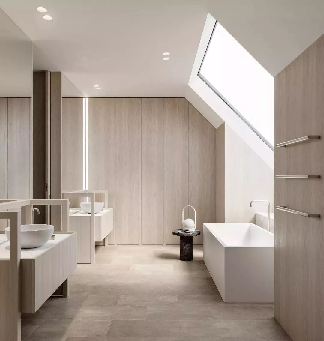 有些时候,浴缸本身就是一件艺术品,价值百万。无需存在感,放在那里,它自然成了空间的主角。