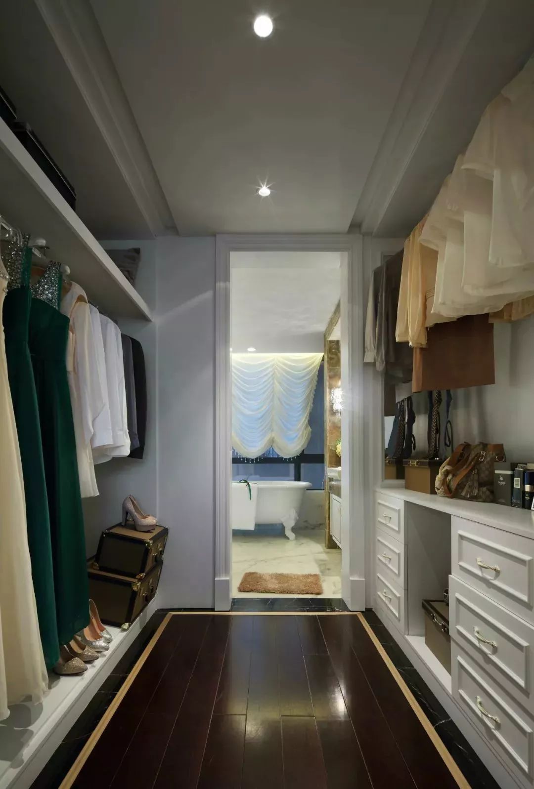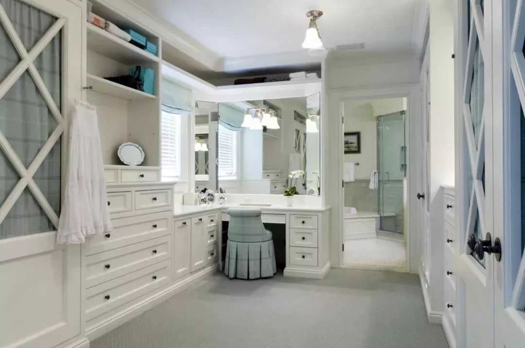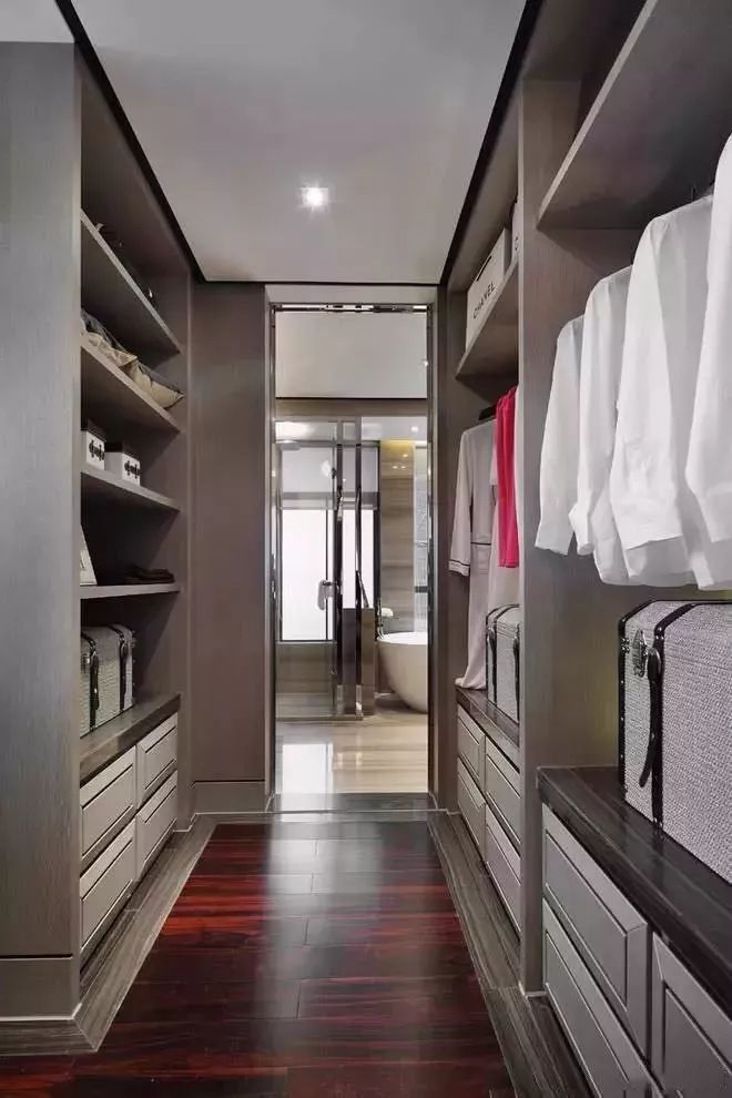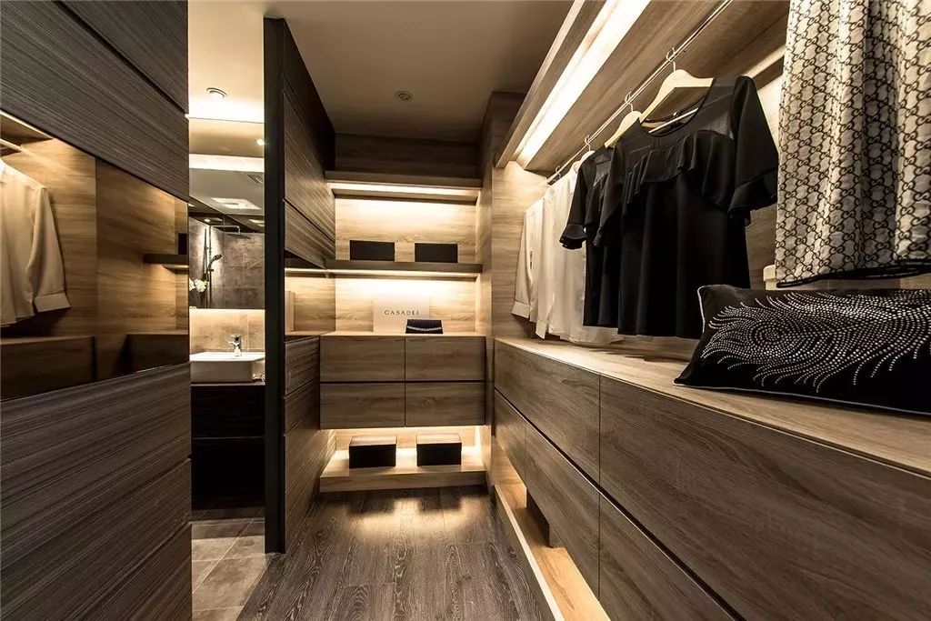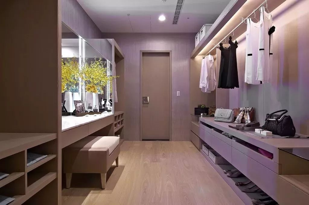 对于大户型的房子而言,主人衣服较多的话,都会在家里隔一个空间来做独立的衣帽间,这种衣帽间的储物功能真的是非常的强大,这等于女主人有个自己的小服装店的体验,恐怕会令不少的女生们羡慕吧!