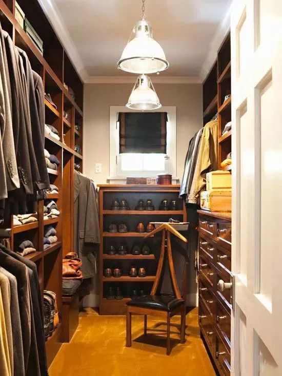 为方便更换衣服的方便,还可以在衣帽间中间摆一个凳子。