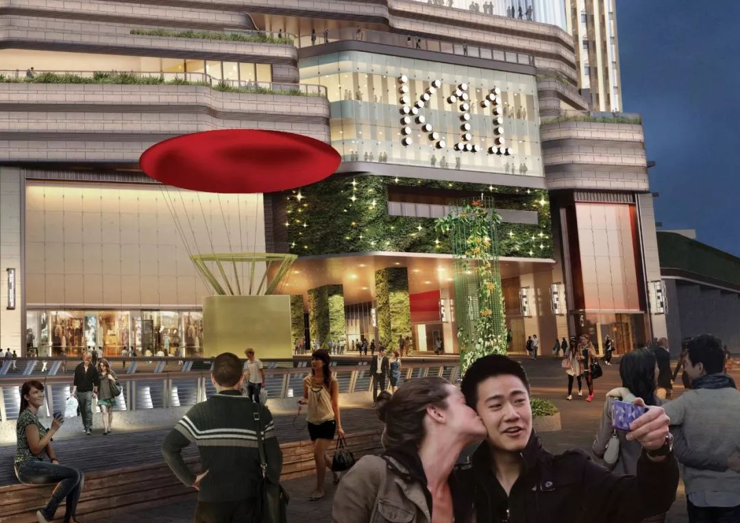 Kube的效果图中,立方体上还有个红色气球天幕,据说会在特殊节庆中不定期出没~吸引游人聚集在此地。