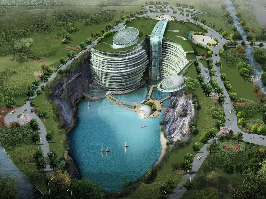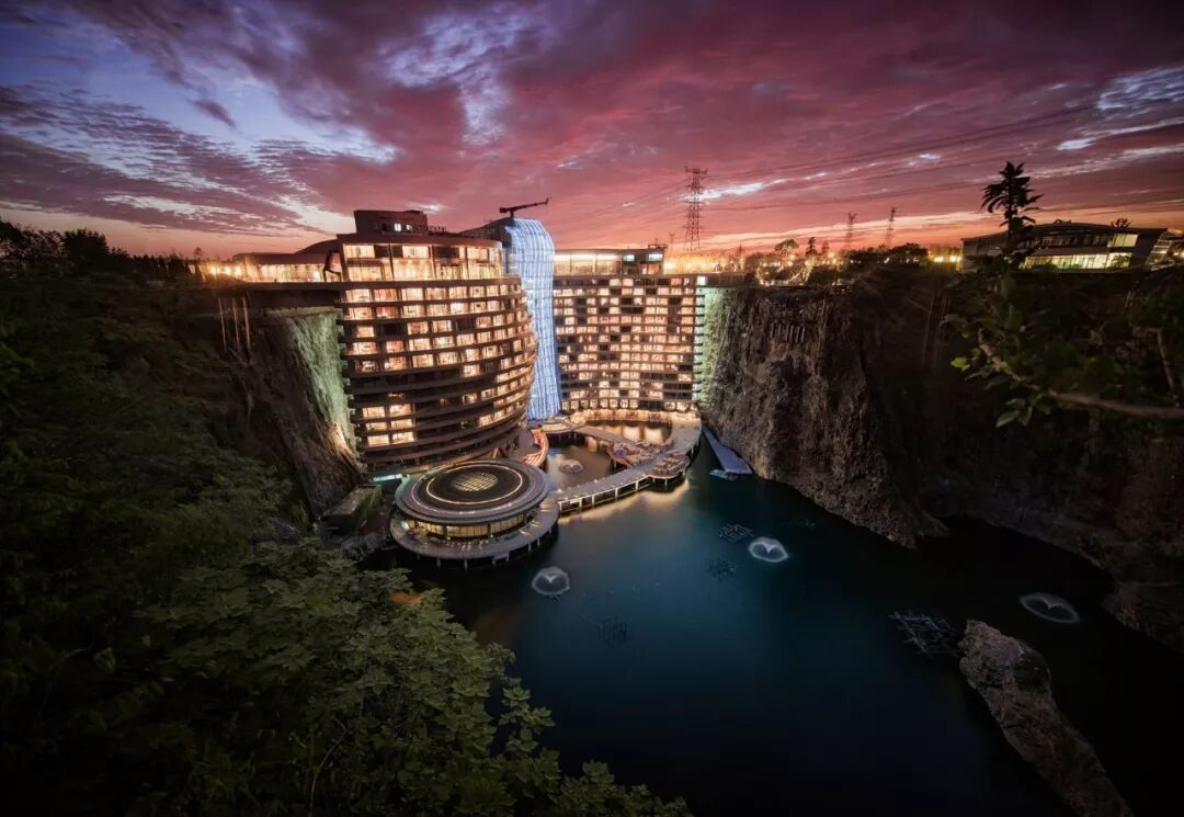 上海世茂深坑洲际酒店为五星级酒店,被誉为“世界上最低的高层建筑”,“世界建筑奇迹之一”, 建设全过程被美国国家地理频道拍摄成纪录片,并在国内外获得多次大奖。