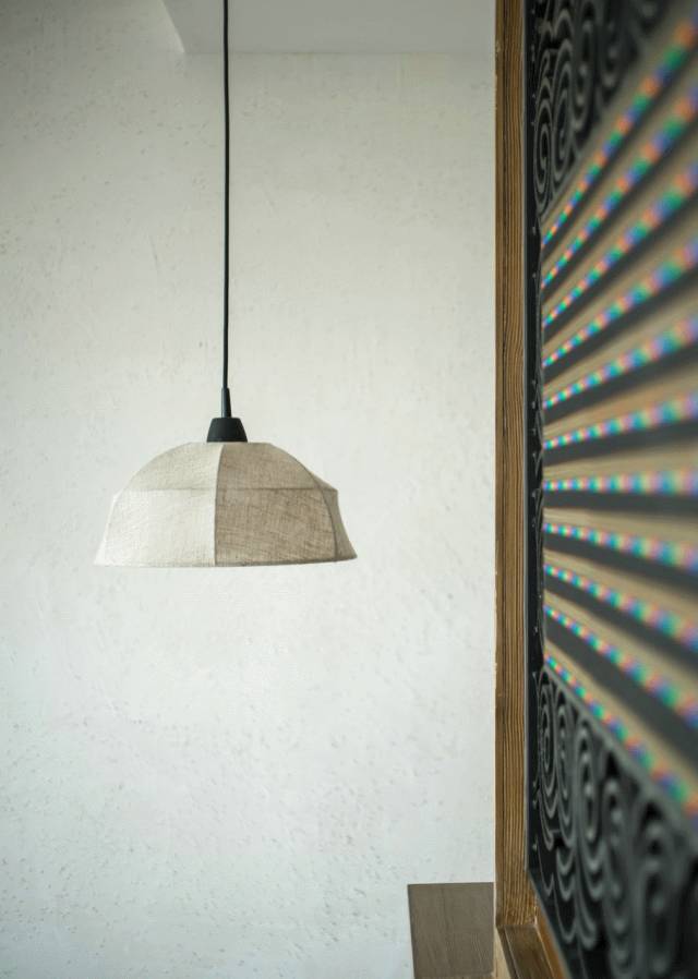 甚至融入稻谷谷粒充满凹凸质感的墙面