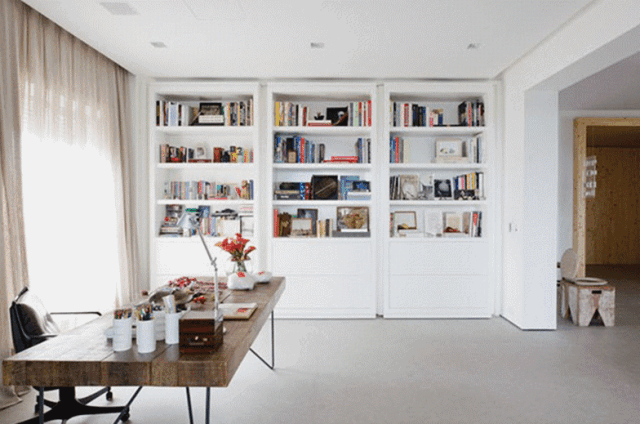 比如:书架、电视墙、置物架、展示架等地方,都可以将门隐藏得“天衣无缝”,从视觉上扩大空间,增加居室的趣味性和实用性。