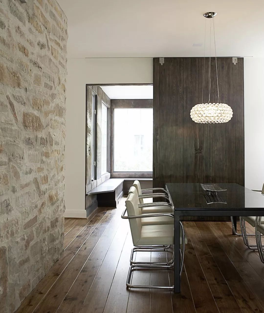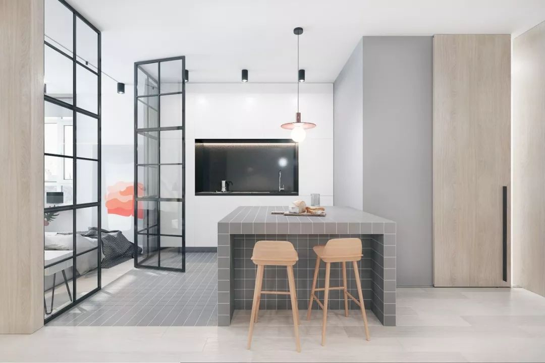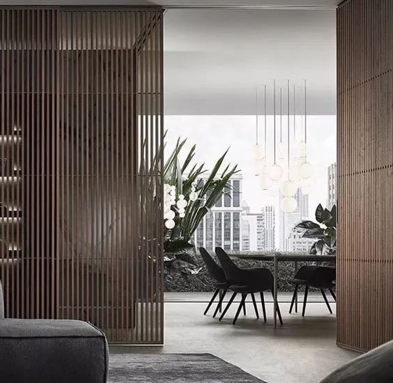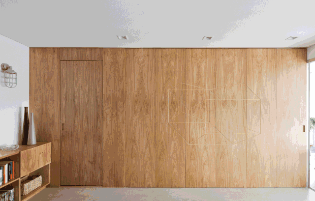 近年来较为流行的一种形式,就是让门完全隐形于一堵轻体墙之中,用于营造私密空间,起到隔绝视线、增加空间感的装饰效果。