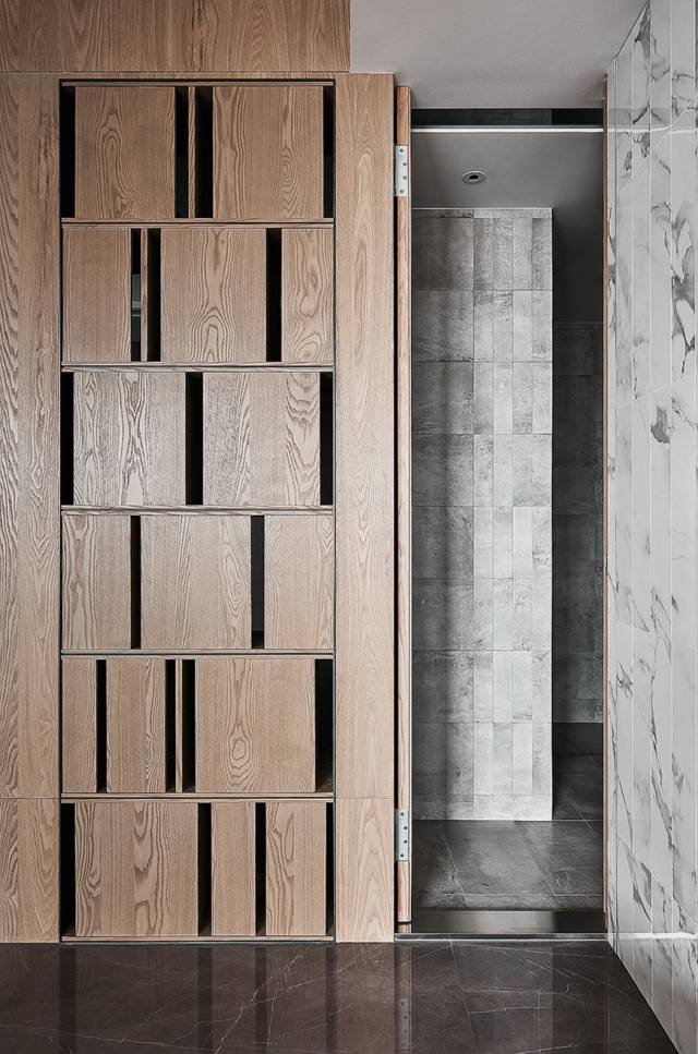 有些家具本身拥有缝隙或纹理,这样设计起来就更加方便了,产生的效果也出人意料,更能达到理想的隐形效果。不过,这样的隐形门在设计立意上要更高级一些,施工比较复杂,造价当然也会相应的抬高。