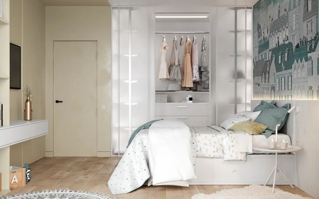 儿童房间以浅黄色和绿色搭配,冷淡中又不失少童心。