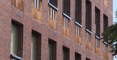 遮光板又成为立面的另一种元素,打破了砖为主的单调立面。
