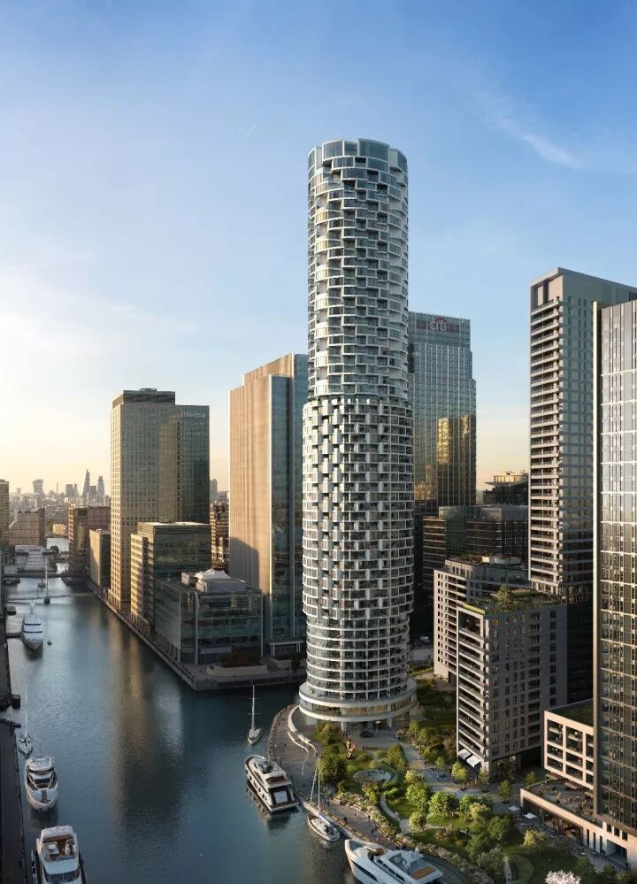 南码头广场地坐落于伦敦具有历史意义的Canary Wharf黄金路口,与河滩形成45°角,最大程度呈现了河流的美景。南码头广场由伯克利开发,由Foster&Partners设计,纤细的68层玻璃钢塔将为伦敦天际线带来新的焦点,将成为欧洲最高的住宅楼之一。