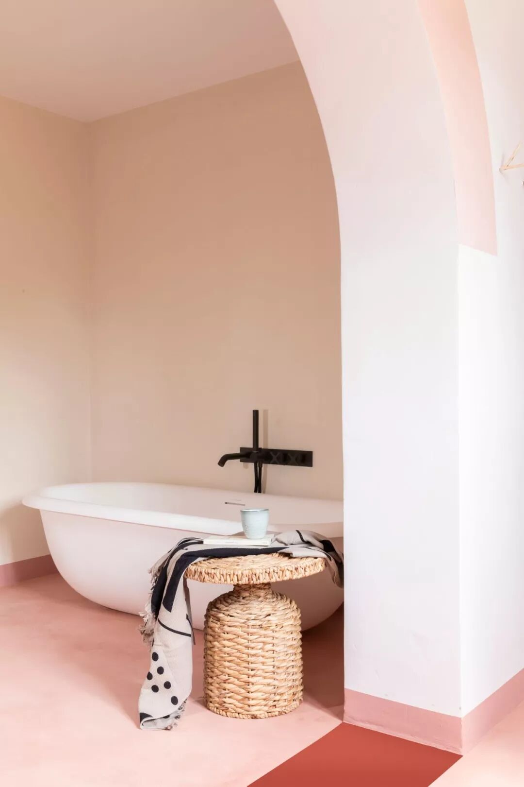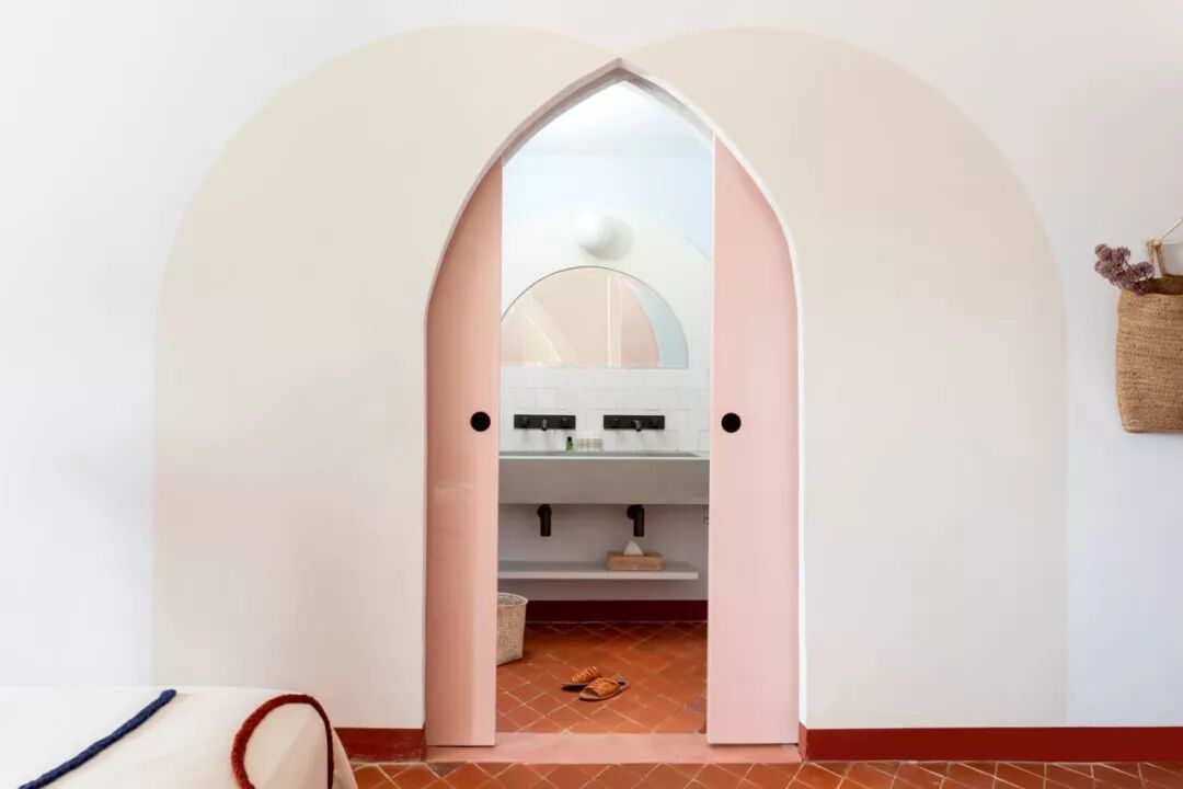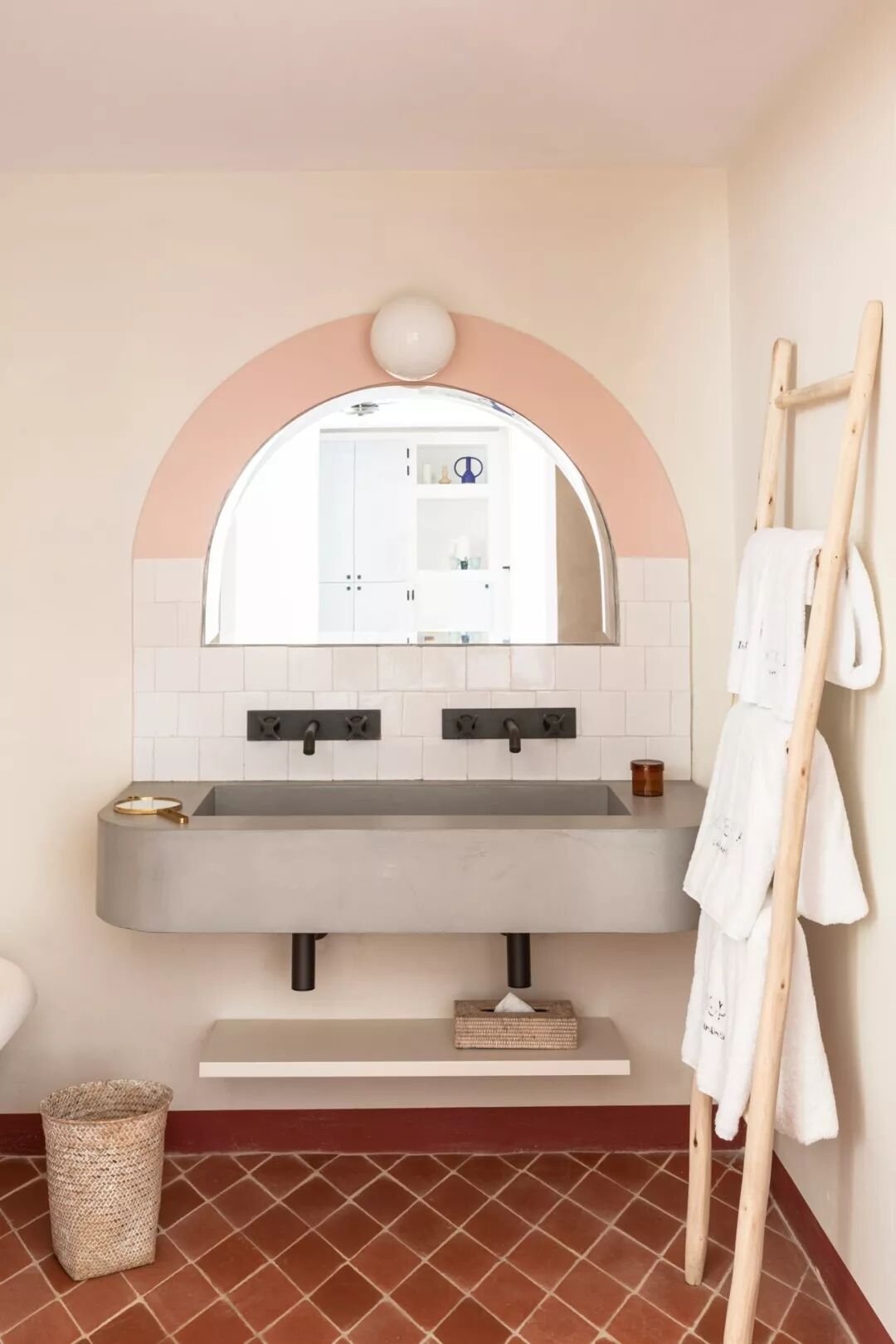 卫生间内运用色块的拱形来装饰门框,多层次的色彩,看起来有点像是复杂的迷宫。保证私密性的同时,拥有更多的想象力。